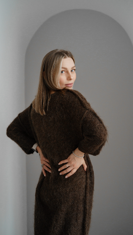 Для того чтобы подчеркнуть уникальность, красоту и мягкость альпака при формировании колористической карты мы придерживались концепции: натуральность + благородность. Это значит, что в процессе выработки цвета волокно подвергалось меньшему воздействию. Мы старались максимально сохранить его первозданность. Оттенки универсальные, спокойные, легко впишутся в повседневный гардероб.